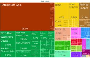 Other industries include agricultural goods, textiles, wood products, construction materials, gems, metals, oil and natural gas.